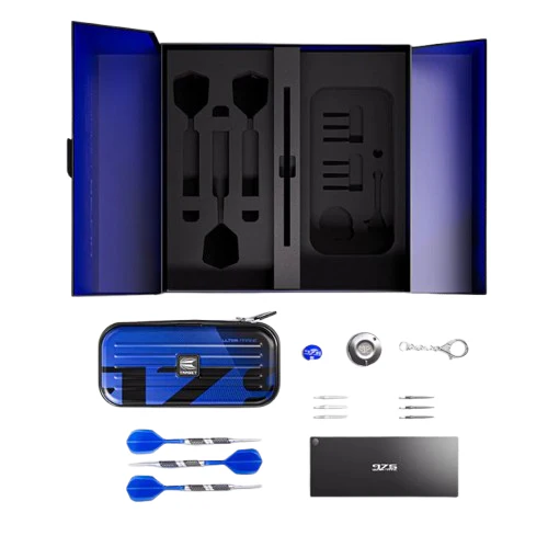 Redefining the boundaries between dart design, performance, and innovation, the 975 Ultra Marine is simply the pursuit of perfection. Drawing inspiration from the Elysian Seventh Edition, the 975 Ultra Marine 03 dart barrel showcases an unique grip which transitions down the length the barrel seamlessly into the Swiss Storm Nano Point, guaranteeing a flawless grip. The dart is finished with an early exclusive K-Flex, Target's integrated flight and shaft system, in a No.6 flight shape and blue colorway.