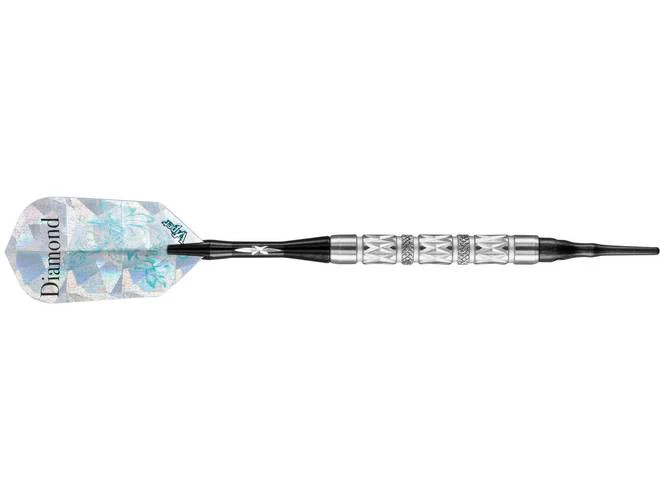 The new Diamond Soft tip Dart set was inspired by fine jewelry and gems. The barrels are 90% Tungsten with multiple crosscut engravings that really make it glitter and shine. The case included is jeweler quality inside and out. The shafts are the aluminum with the star engraving in the center. This set makes a great gift for that special dart player.