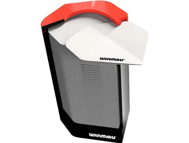 The Winmau flight pod is a space-saving way to store your flights. The spring-loaded design allows them to easily pop out of the pod when you slide one forward. Holds up to 50 foldable flights.